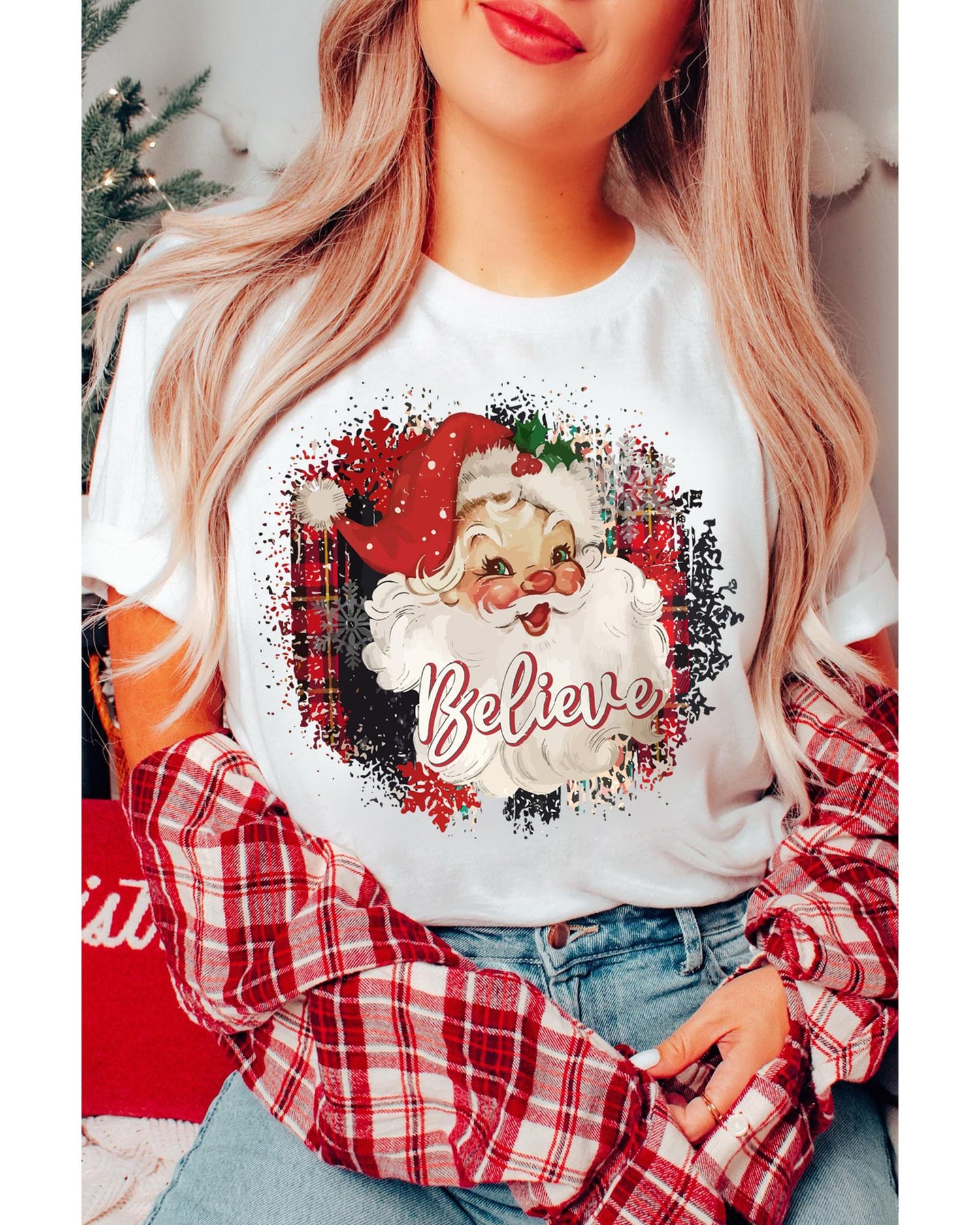 White Believe Christmas Father Graphic Crewneck T Shirt - M