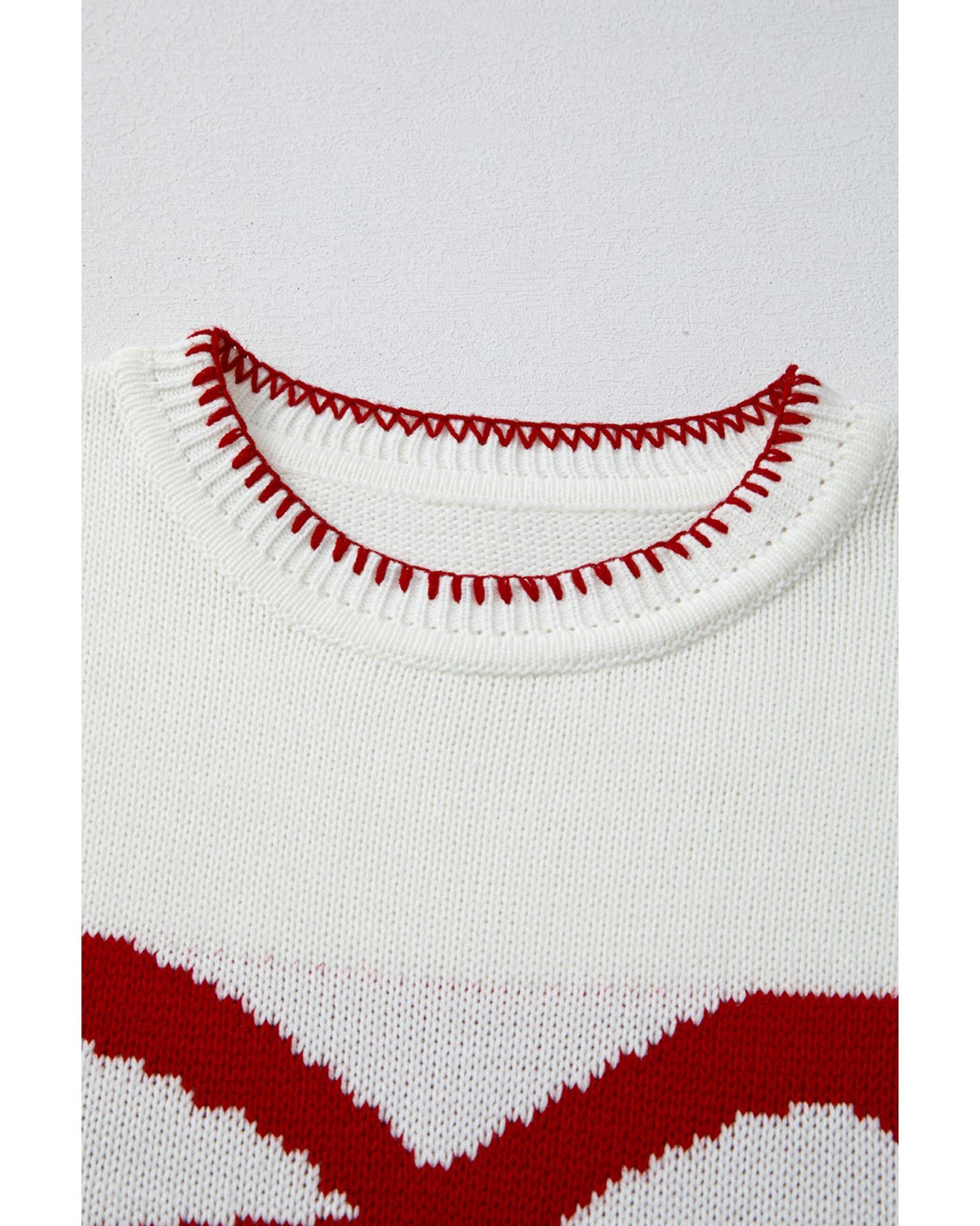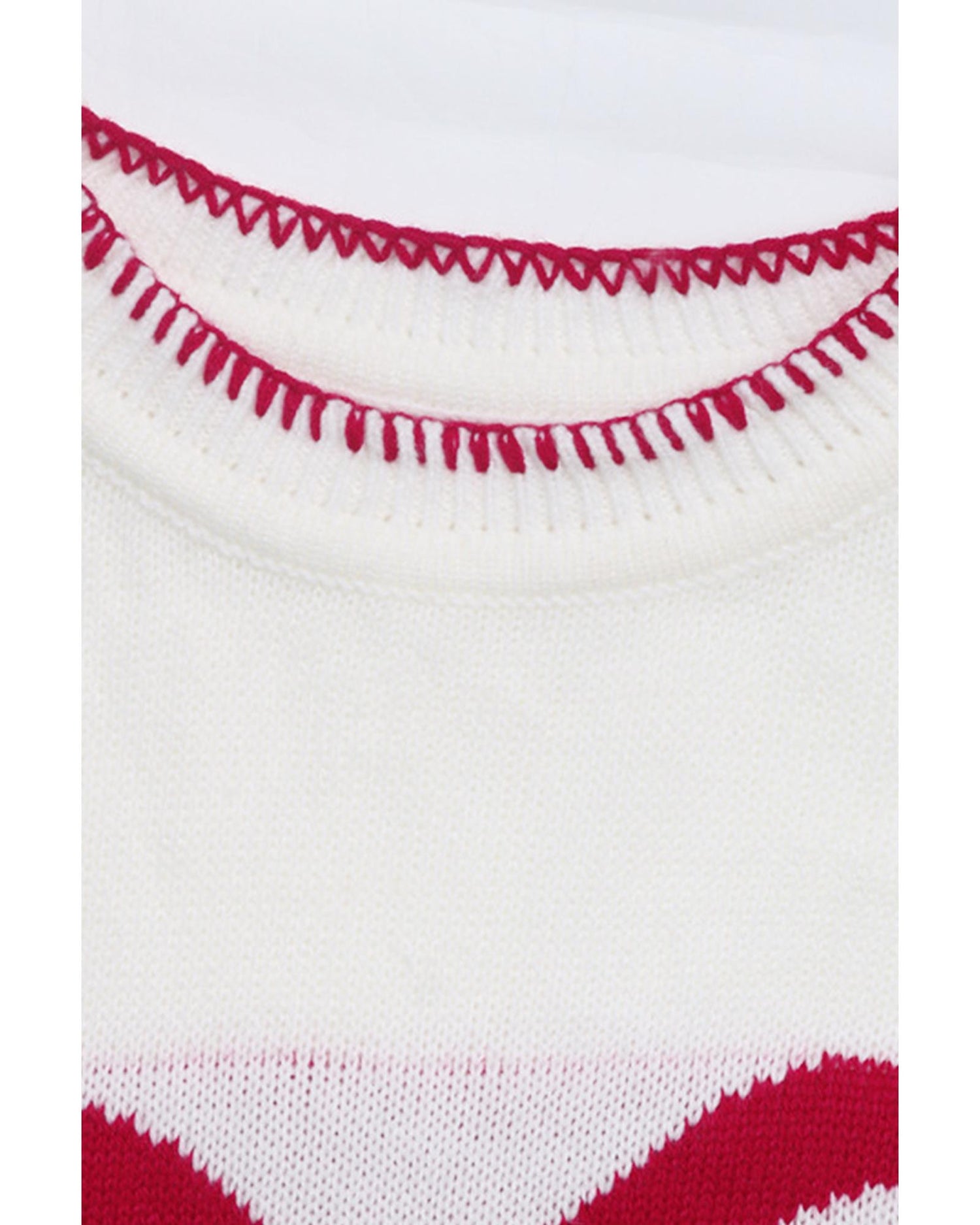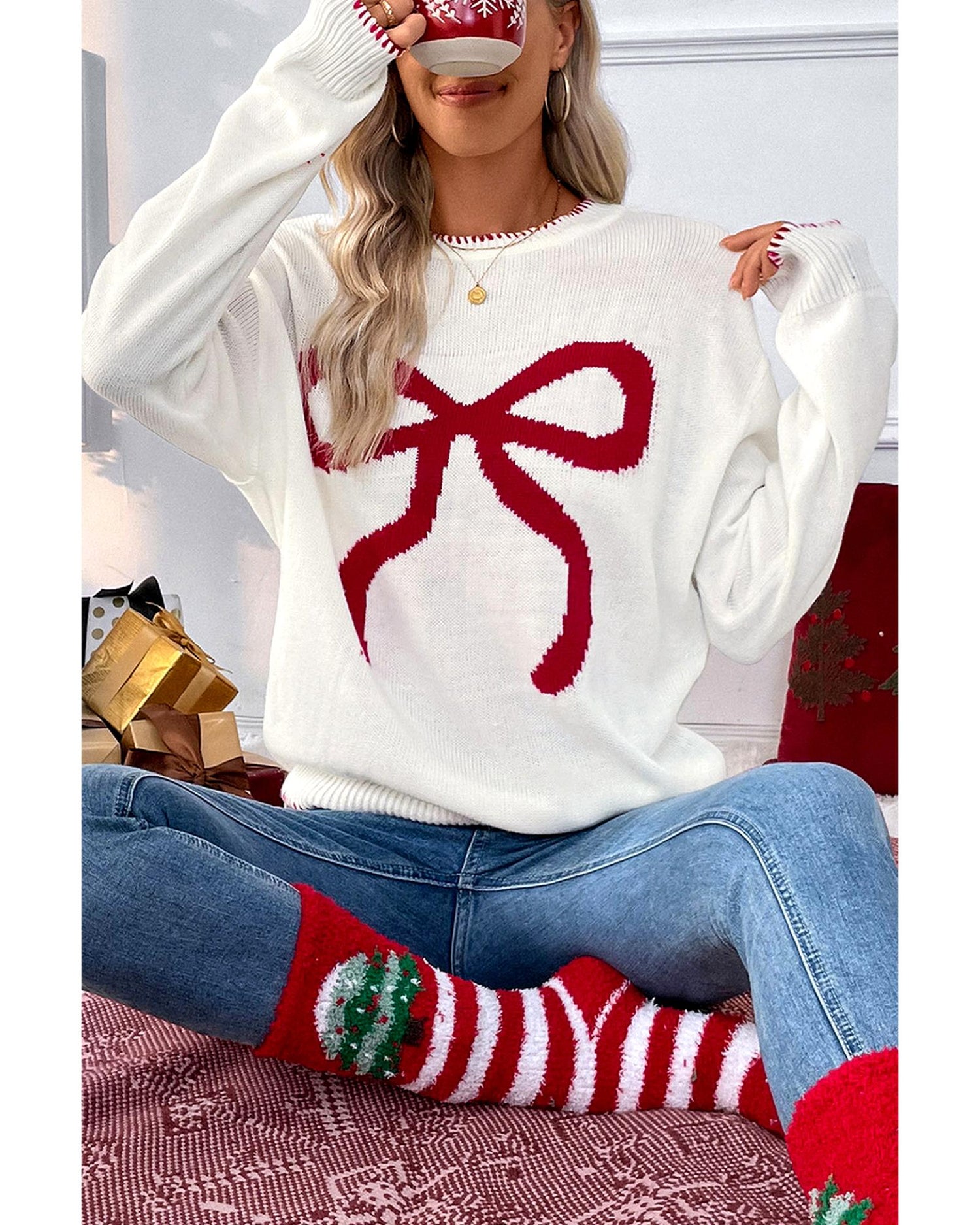 White Bow Pattern Contrast Trim Christmas Loose Graphic Sweater - XL