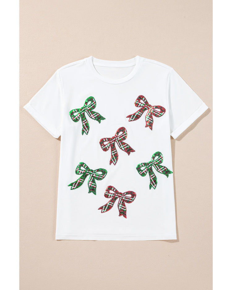 White Christmas Bowknot Graphic Cotton Blend T Shirt - 2XL