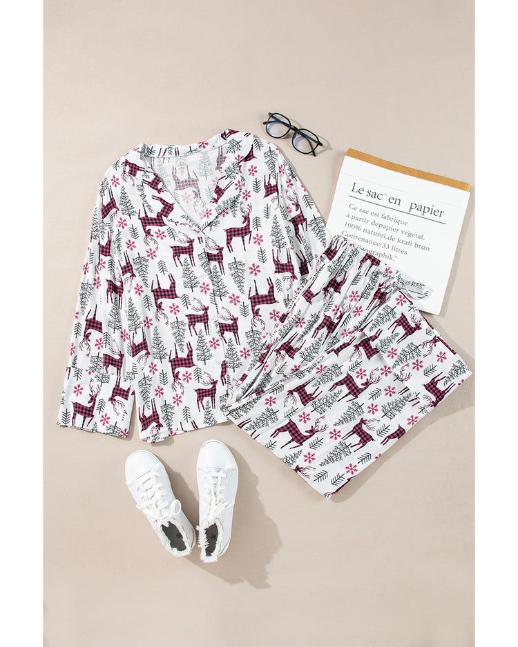White Christmas Printed Shirt and Pants Pajama Set - XL