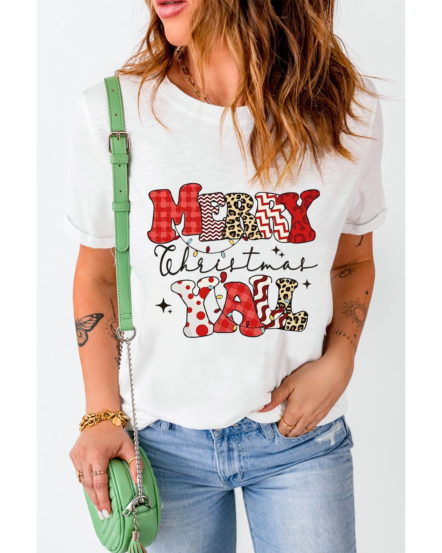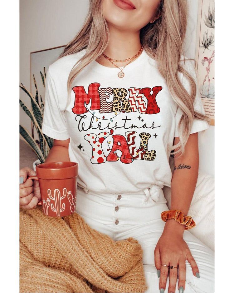 White MERRY Christmas YAll Graphic Crewneck T Shirt - M