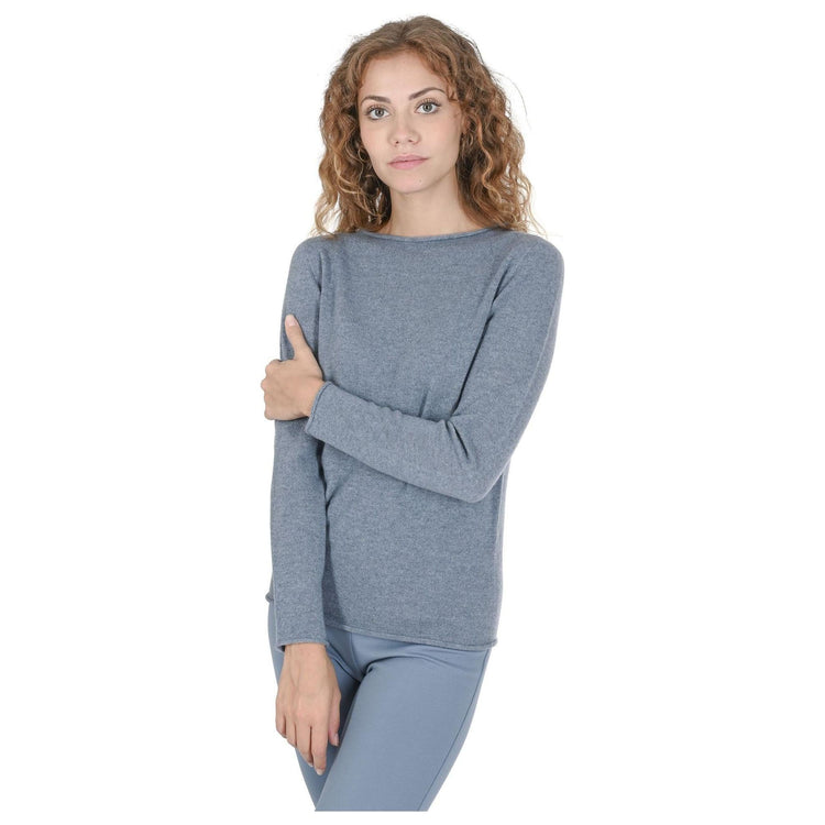 Crown of Edinburgh Cashmere Women's Cashmere Boatneck Sweater - Italian Crafted in Sky blue - S
