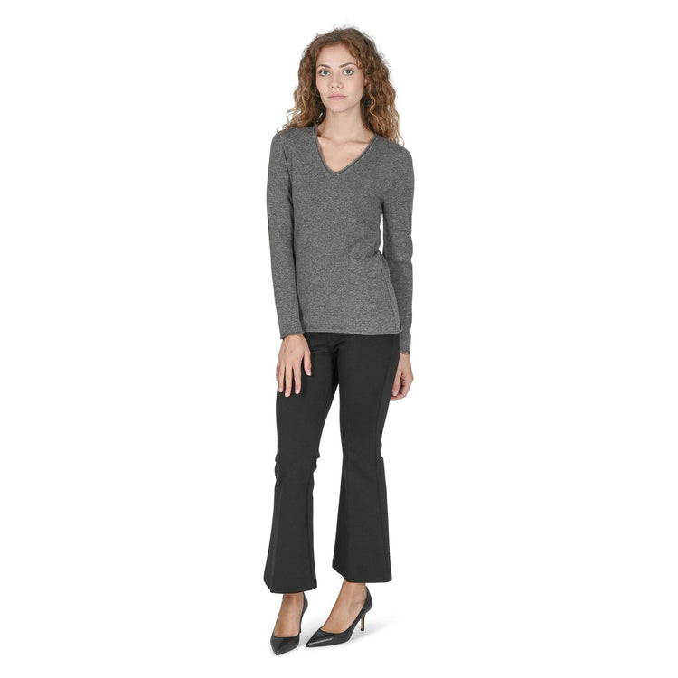Crown of Edinburgh Cashmere Women's Cashmere V-Neck Sweater for Women in Grey - 44 EU