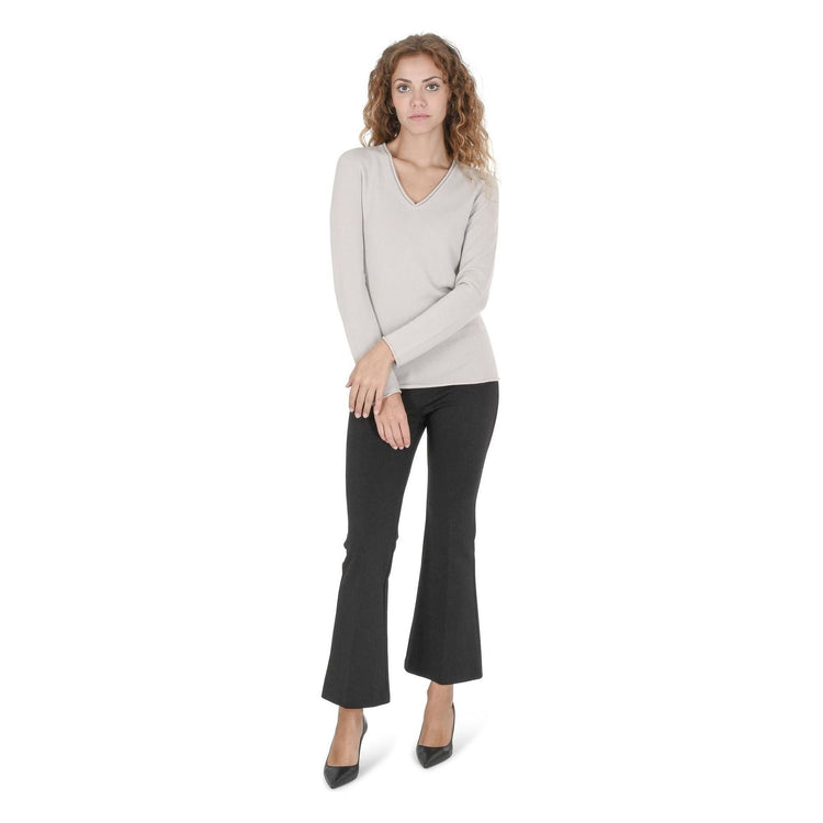 Crown of Edinburgh Cashmere Women's Premium Italian Cashmere V-Neck Sweater in Grey - 40 EU