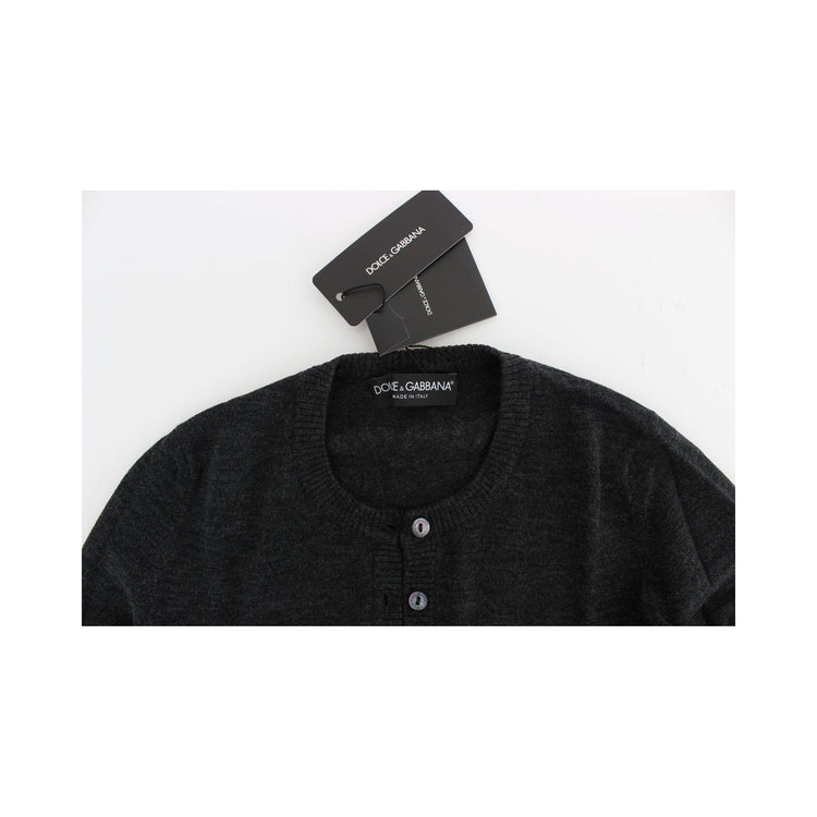 Gray Wool Cardigan Sweater with Logo Details 38 IT Women