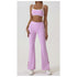 Stay stylish and comfortable while working out with our Flared Leggings & Sports Bra Set. Perfect for yoga, running, and all your fitness activities, this activewear set offers a flattering fit, breathable fabric, and exceptional comfort. Designed with a sporty, minimalist style, it features contrast stitching and a seamless construction to enhance your movements during workouts.