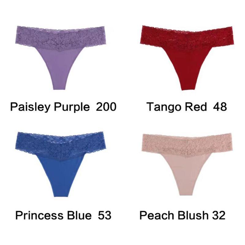 Size L Lace-Trimmed Thong Underwear -4-Pack in Paisley Purple,Tango Red,Princess Blue and Peach Blush