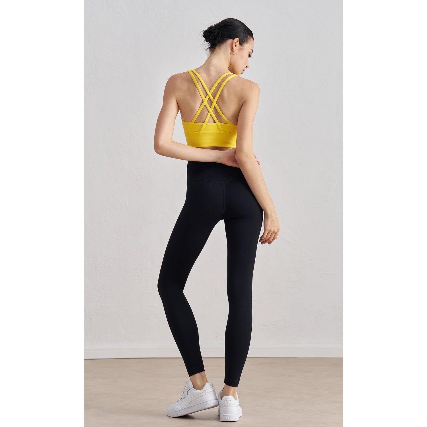 Size M Yellow Cross-Back Yoga Sports Bra for Women - High Support & Shockproof Fitness Bra