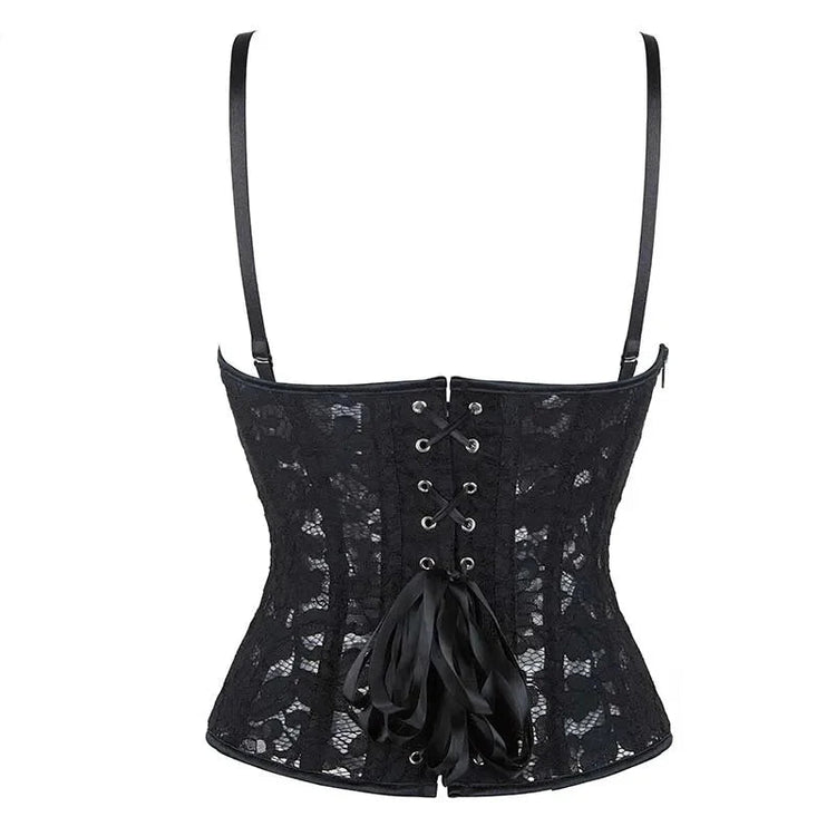 Xs-Xxl Spaghetti Strap Lace Mesh Lingerie With Padded Cups Plus Size Bustier - M