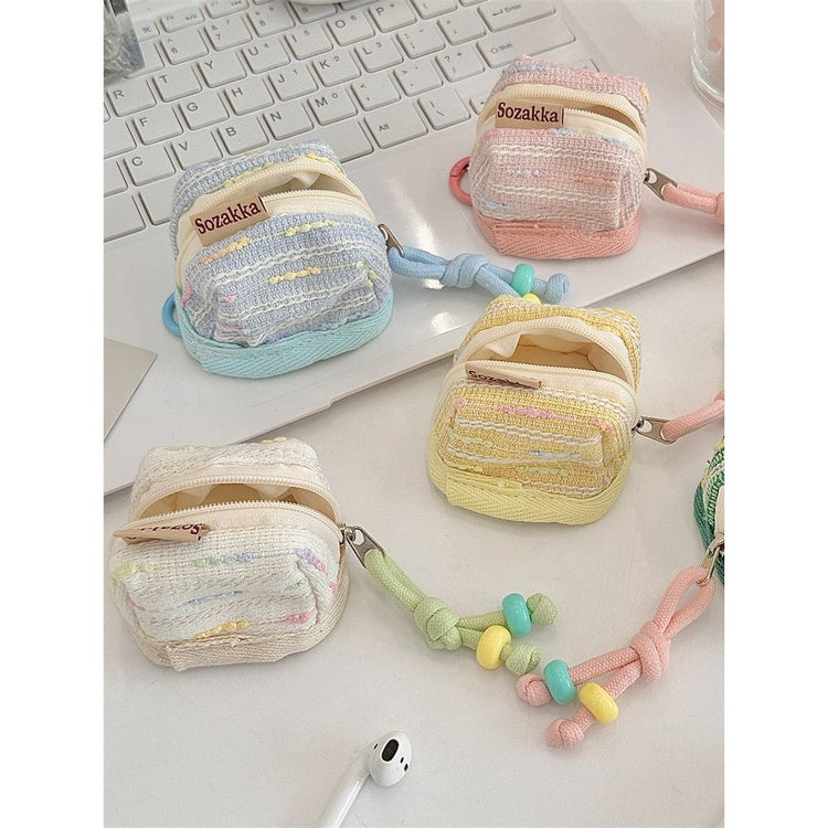 Chic Woven Mini Backpack Pouch - Earphone Case & Coin Purse with Keychain Lanyard