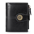 Black (64 grain) Women's Short Leather Wallet - European Style Waxed Leather Coin Purse with Zipper Card Holder in Red