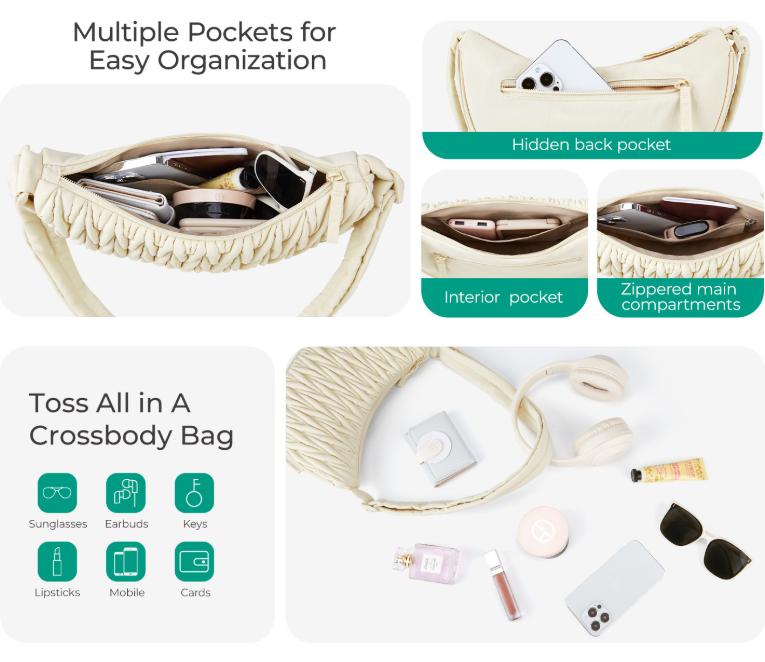 • 1 x Pleated Crescent Sling Bag with Adjustable Strap