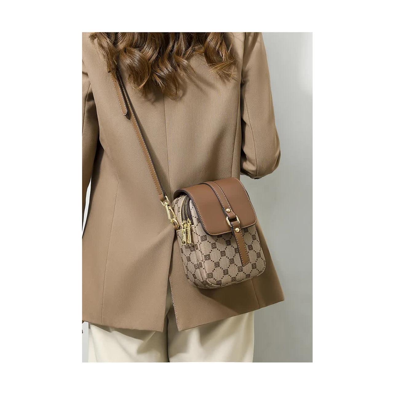 This vertical crossbody bag is perfectly sized for modern smartphones and your essential items. Its structured design and multiple compartments ensure everything stays organized, while the chic pattern and gold-tone hardware add a touch of elegance to any outfit.