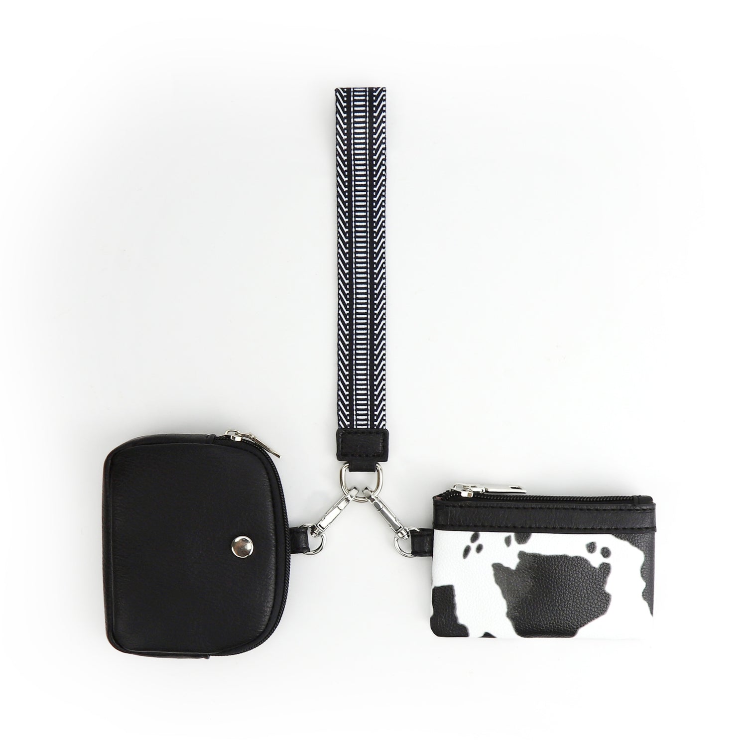 Cow Black Stylish Mini Wristlet Wallet - Nylon, Multi-Compartment Design