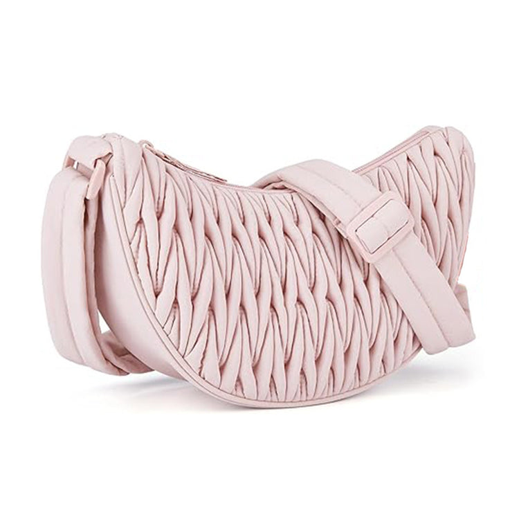 Pink Chic Pleated Crescent Sling Bag - Water-Resistant Lightweight Crossbody & Shoulder Purse