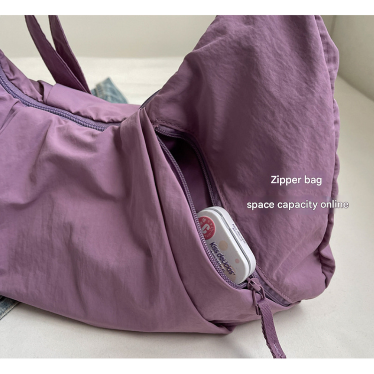 Purple Lightweight Crescent Crossbody Bag - Slouchy Nylon Hobo Purse for Casual Everyday Use