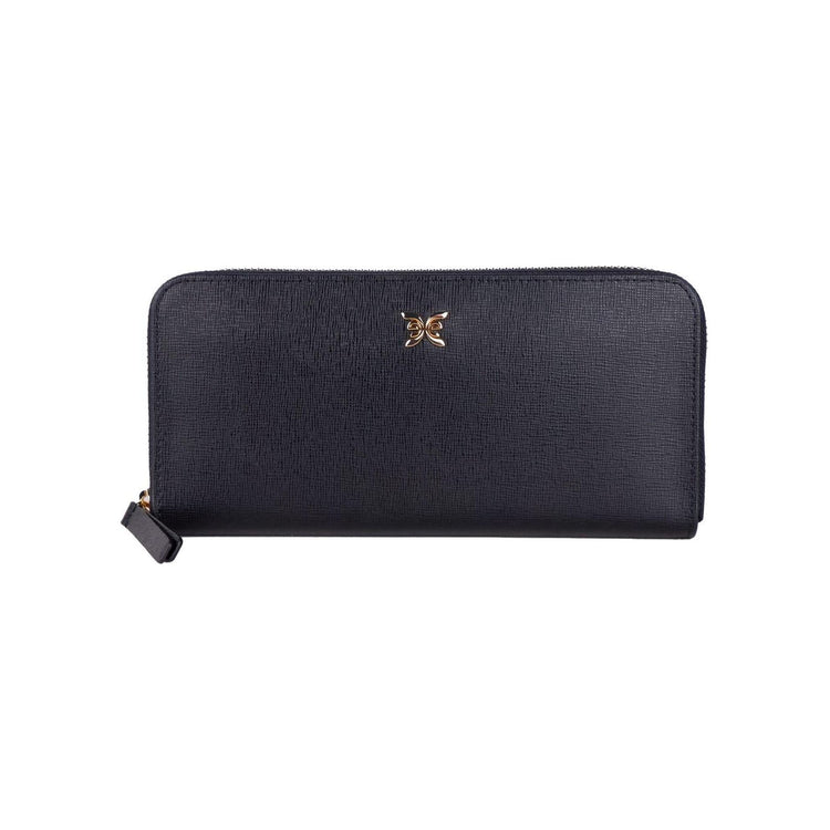 - Black leather zippered wallet
