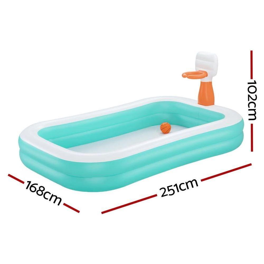 Your children will be making a splash among their friends this summer with the Bestway Basketball Play Pool. The pool is strong and sturdy and stands up to robust play with minimum hassle. The pre-tested vinyl material is also durable and safe for kids. Better still, the pool also features a basketball hoop and includes a ball for a whole lot of shooting and dunking fun. And once the fun and games is over, just release the easy-to-drain safety valve to empty the pool and store until the next play day. Not least, a heavy-duty repair kit is also included. Packaged in a colourful box, the pool is recommended for kids 3 years and above.