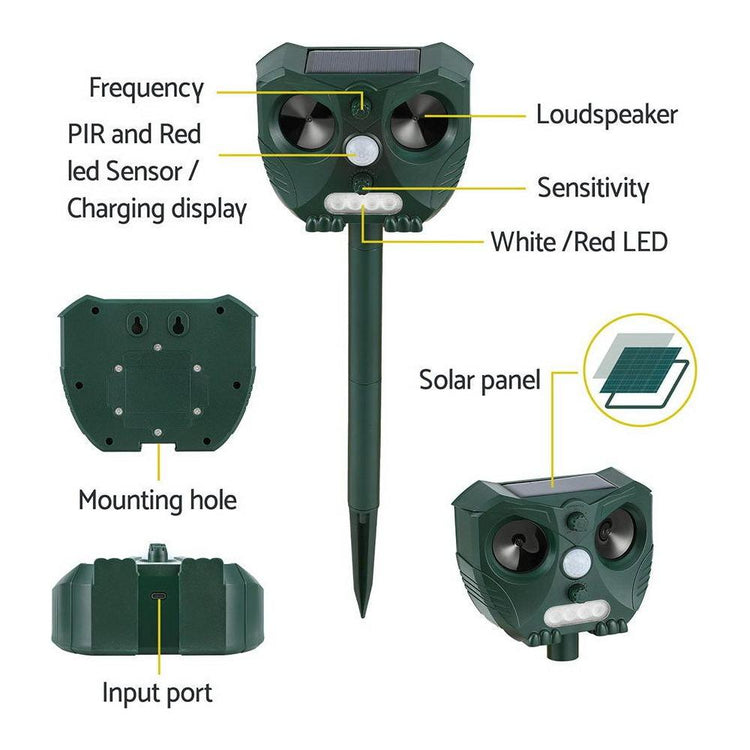 Our Solar powered Snake Repellers keep snakes out of your area without harming them by emitting strong ultrasonic and flash white-LED to scare animals. A white LED light also provides a convenient night light in your garden. You can easily set up multiple repellers to provide a barrier around your house. They are also portable to bring along to camping trips for peace of mind. Suitable for your garden, yard, farm and orchard, And it can be inserted in ground or mounted the wall or put on the flat surface.