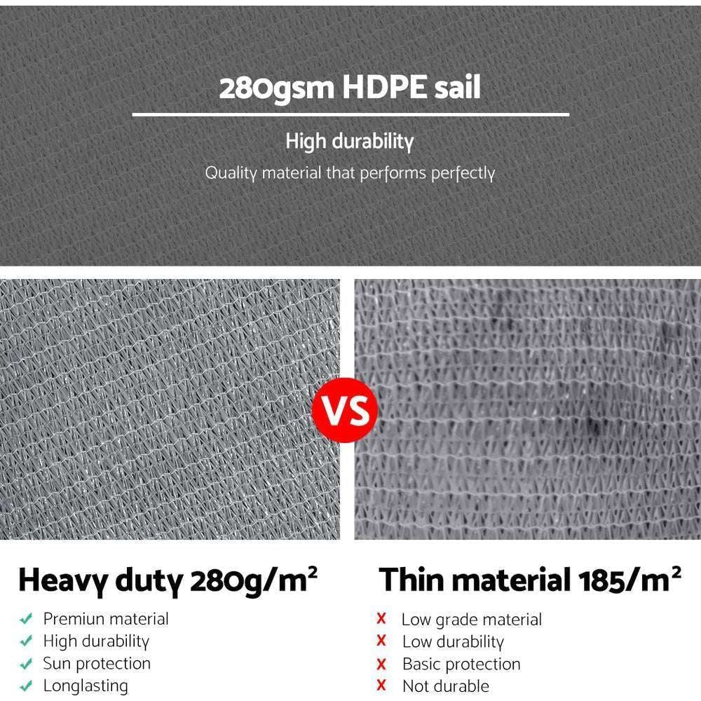 Designed to be a permanent covering, our Shade Sail is made from highly breathable 280g/m2 commercial grade 100% polyethylene fabric. This allows cooling air to pass through and help keep the under shade areas well ventilated. The material also blocks up to 98% of harmful UV rays and is all-weather proof to suit Australian climatic conditions. Plus, the material is further enhanced with Americhem UV-resistant additive from the USA to prolong its UV protection effectiveness.