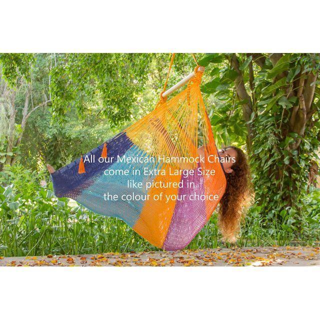 Our Mexican hammock chairs are just amazing with the bonus of a comfy back support, difficult to find elsewhere. Because they're extra large you can relax vertically or horizontally, anywhere you want, you choose.