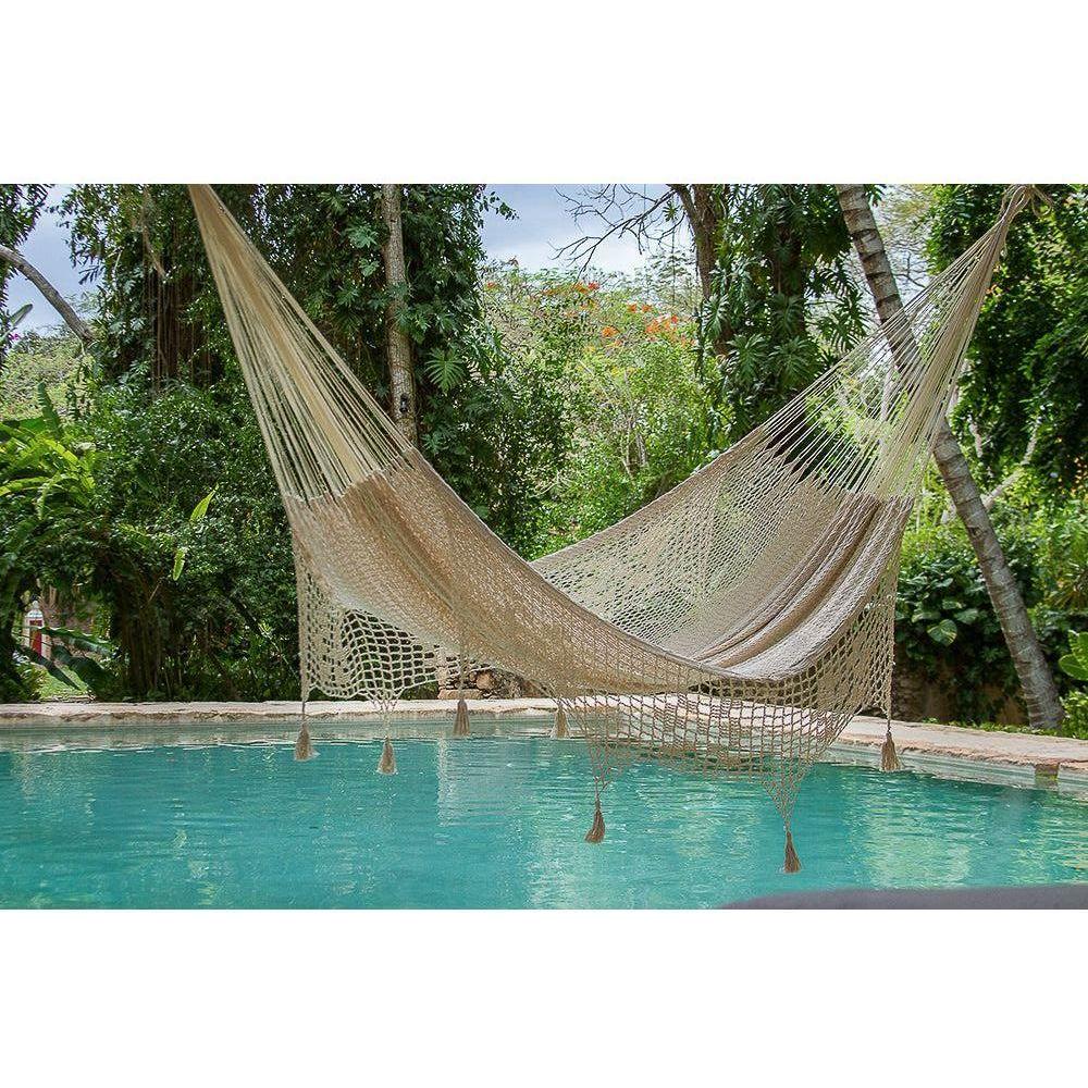 Outdoor undercover cotton Mayan Legacy hammock with hand crocheted tassels King Size Marble