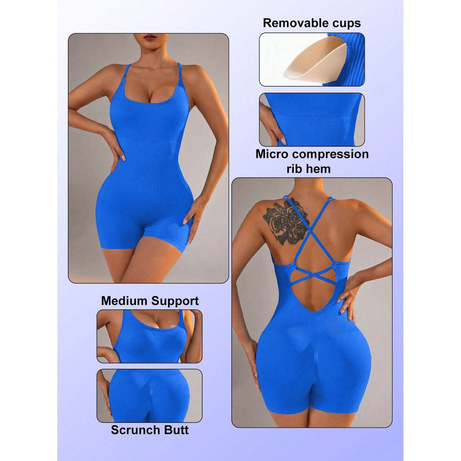 Nylon Seamless Yoga Bodysuit - Women's Athletic Romper, Crisscross Back, Workout Jumpsuit