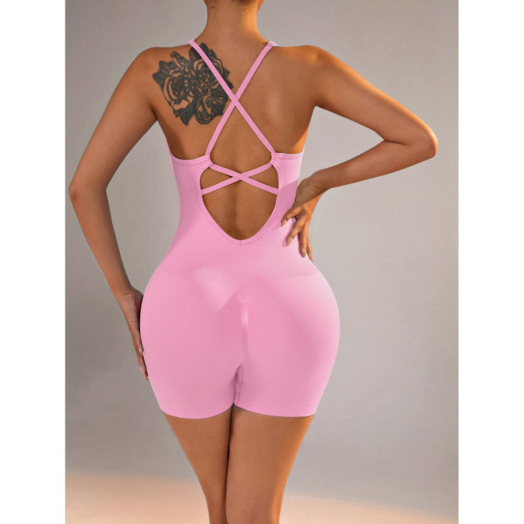 Nylon Seamless Yoga Bodysuit - Women's Athletic Romper, Crisscross Back, Workout Jumpsuit