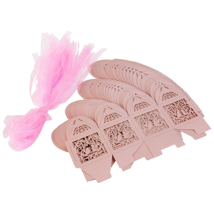 100 Piece Pack - Pink Dove Bird Heart Baby Birth naming Ceremony Bomboniere Favor Lolly Gift Card Box