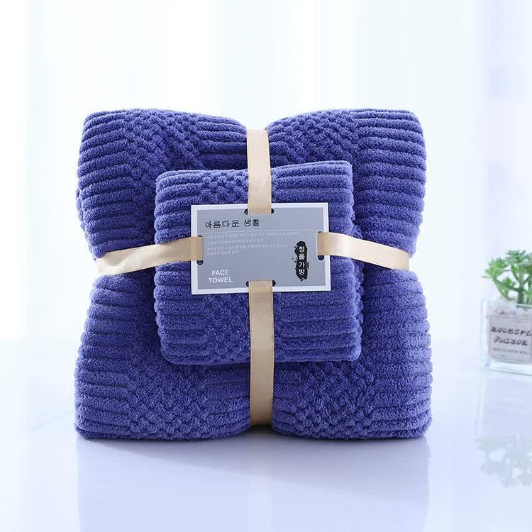 (2 PCS Dark Blue) Coral Fleece Towel and Bath Towel Set - Ultra Soft, Absorbent, and Lint-Free for Home and Spa