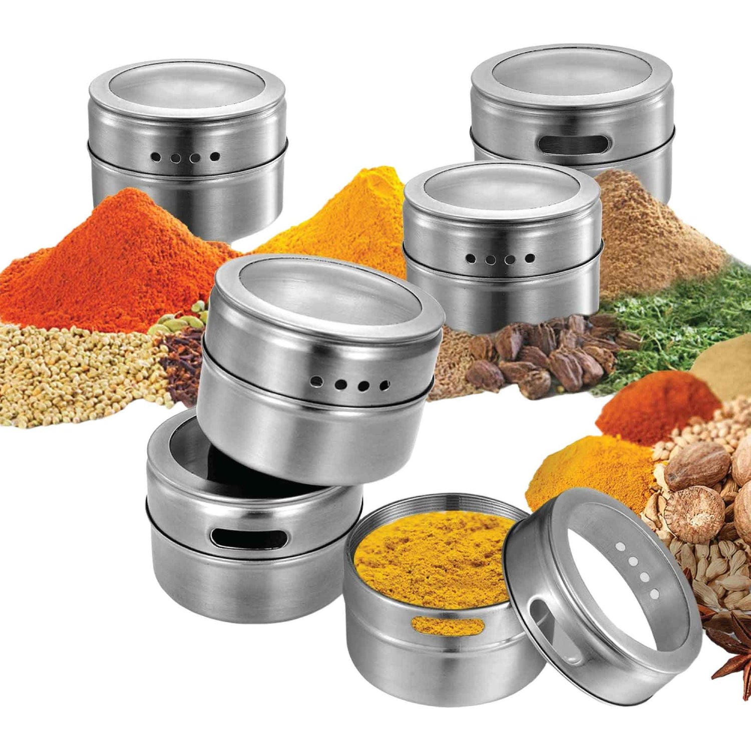 The jar has 2 dispensing shaker openings so you can monitor the rate at which the spices are poured. Made from durable stainless steel with transparent opening at the top of the lids so you can observe the contents inside.
