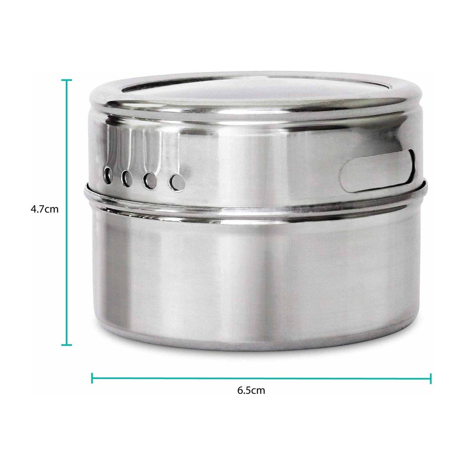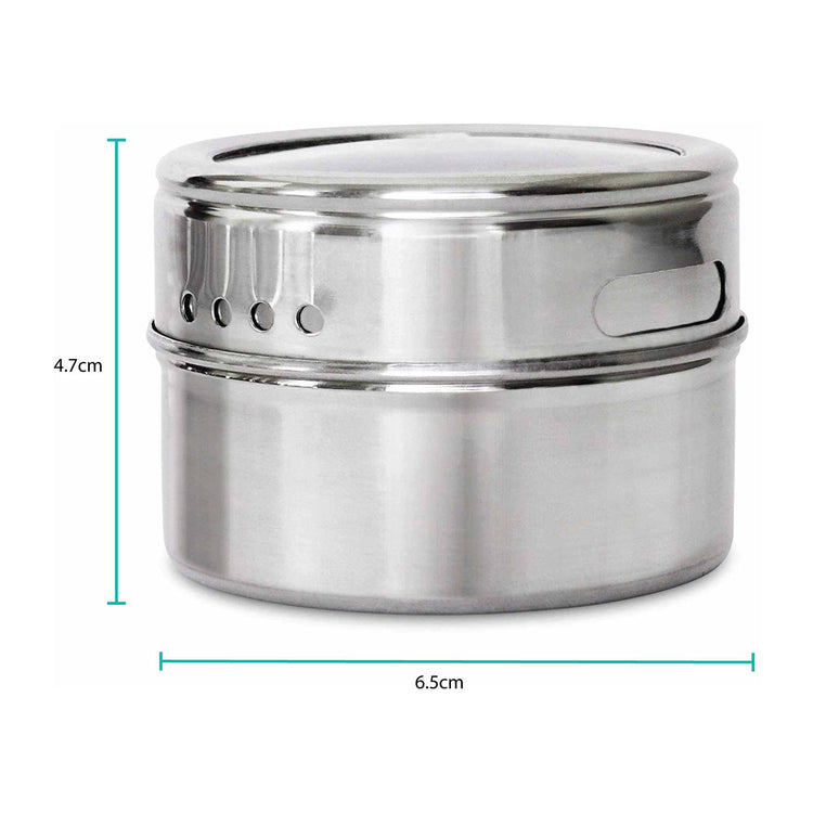 Spice up your cooking with this stainless steel spice jar with a shaker lid and magnetic base. Attachable to any metal surface, fill the tin up with your favourite spices or teas for easy application and storage.