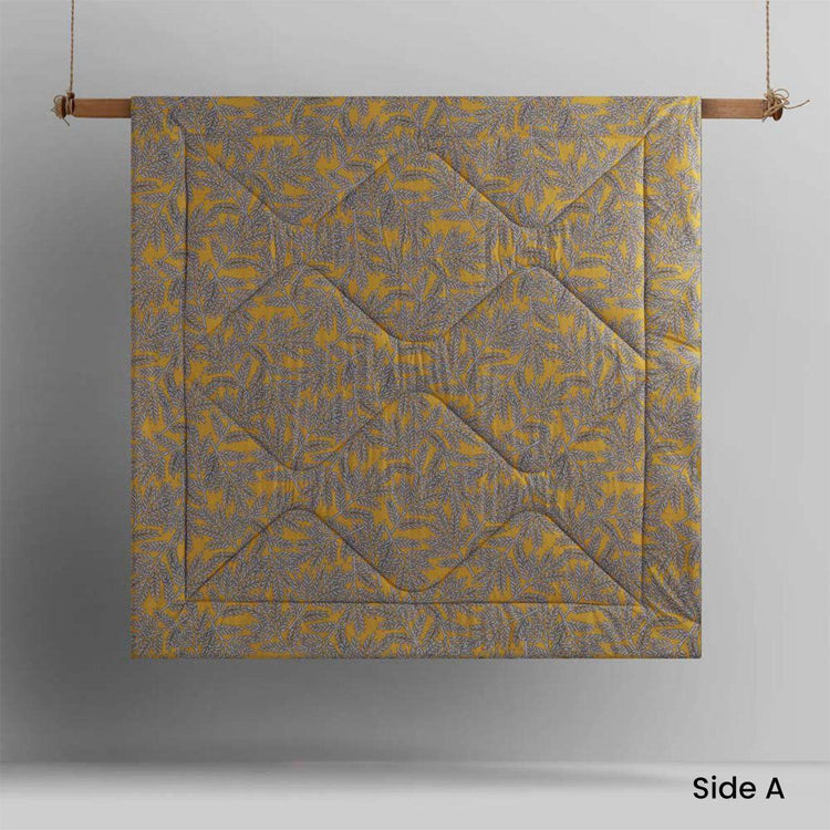 You will thank yourself a hundred times over for buying this great digital printed comforter set in mustard, grey, brown, and silver colour tones. Refusing to compromise on design, comfort, and especially affordability, this Clove Washed Cotton Printed Reversible Comforter Set by Accessorize is certain to provide you with all-year-round comfort and warmth. Made from 100% Cotton cover with polyester filling.