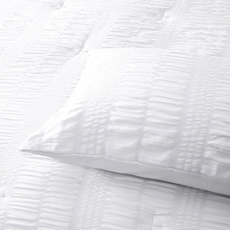 Change the look of your bedroom by adding some texture with the Accessorize Seersucker White 3 Piece Polyester Comforter Set. This comforter set is made from 100% Polyester cover with 100% Polyester filling, keeping you comfortable all night long. Our design features seersucker pattern running down the comforter and pillowcases adding that chic, minimalist style.