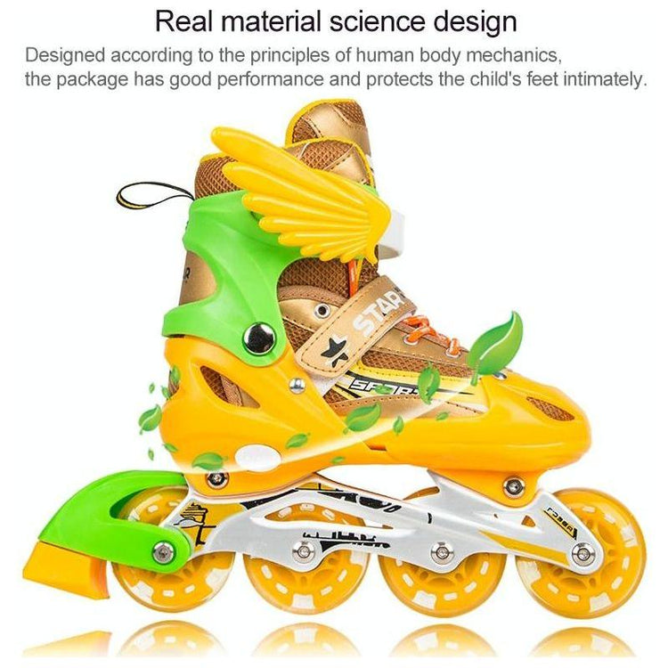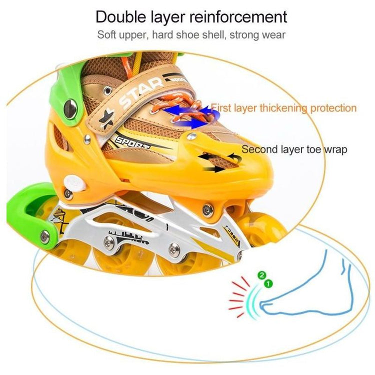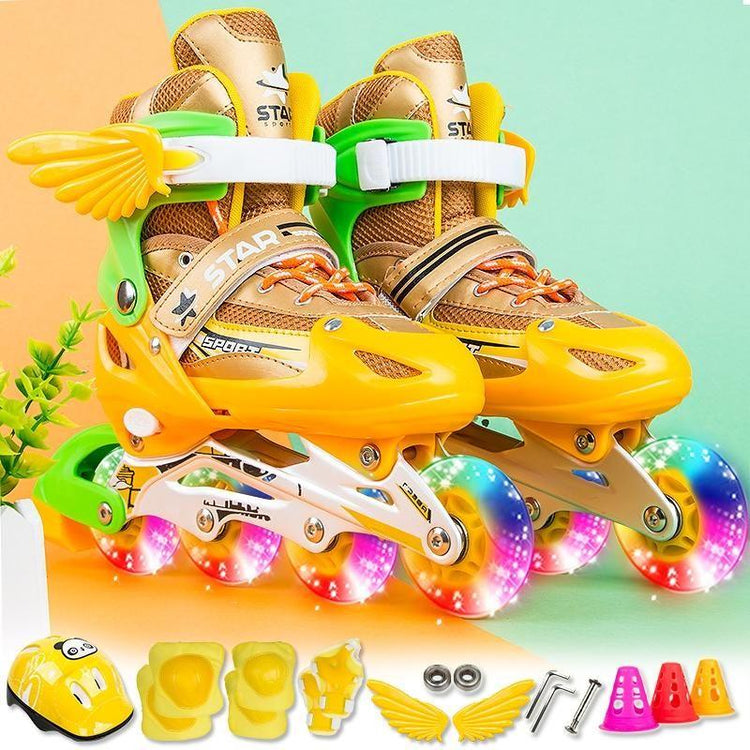 Adjustable Kids Roller Skates Set - Single Flash Wheels - Size S