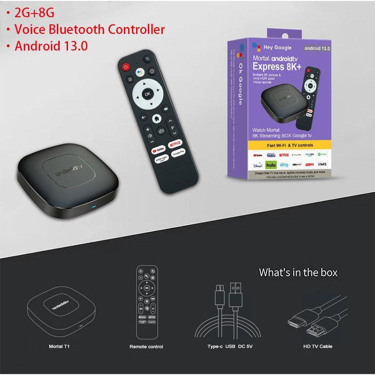 Upgrade your home entertainment experience with the Android TV Express 8K+ Streaming Box. Powered by Android 13.0, this compact device delivers stunning 8K resolution, lightning-fast performance, and seamless access to your favorite streaming platforms like Netflix, Hulu, Disney+, and more.