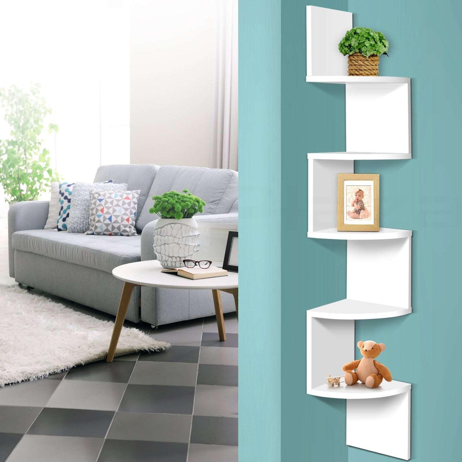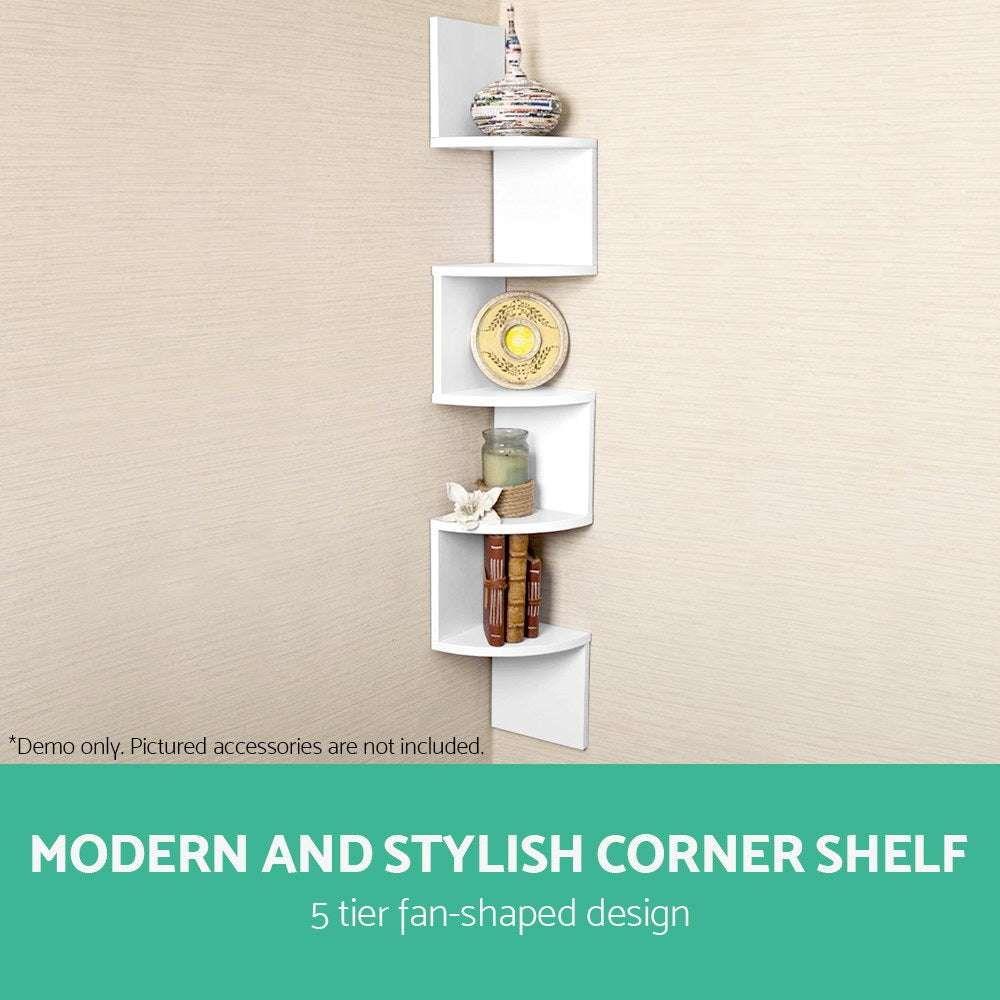 Have an interesting stand-up in your home with this corner shelf. Featuring with 5 tiers, giving you shelfs for personalised items. Photos, plants, decorative items, anything you love to put on. Keep your floor space free for other things in your home.