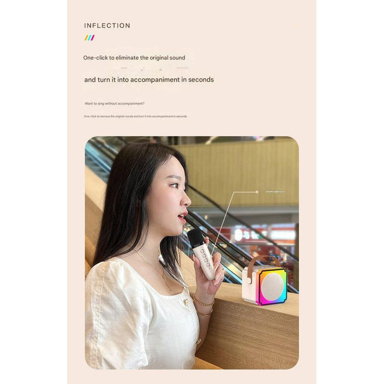 Bring the party anywhere with this fun and stylish Portable Mini Karaoke Machine & Bluetooth Speaker! Combining a high-quality Bluetooth speaker, a wireless microphone, and dazzling RGB lighting effects, this compact system is perfect for home KTV nights, family gatherings, kids' parties, outdoor camping, and more.