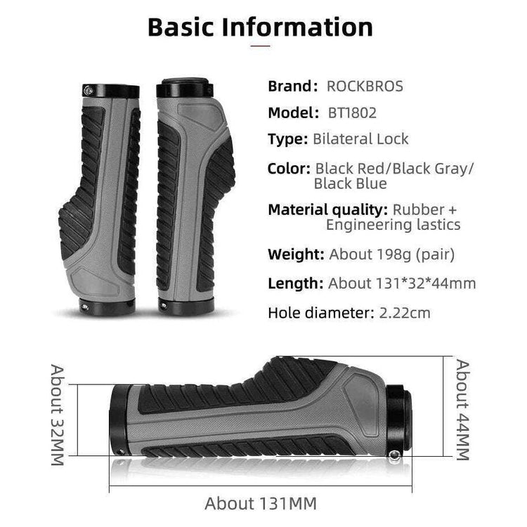 Bicycle Grips MTB Road Bike Double Lock Rubber Handlebar Grips Anti-Slip Rock Bros RED