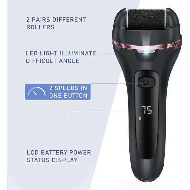 Black 3 Pcs Suit Electric Foot Callus Remover with LCD Display | Waterproof Pedicure Set | Dual-Speed Dead Skin Exfoliator for Smooth Feet