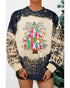 Black Christmas Tree Graphic Bleached Leopard Tie Dye Sweatshirt - XL