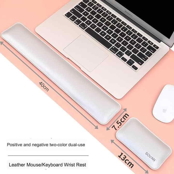 Enhance your workspace with this elegant and ergonomic keyboard wrist rest and mouse pad set. Designed for comfort and durability, this set is made of high-quality PU leather, providing dual-sided usability with a luxurious feel. Whether you're working or gaming, this set ensures optimal wrist support for extended use.