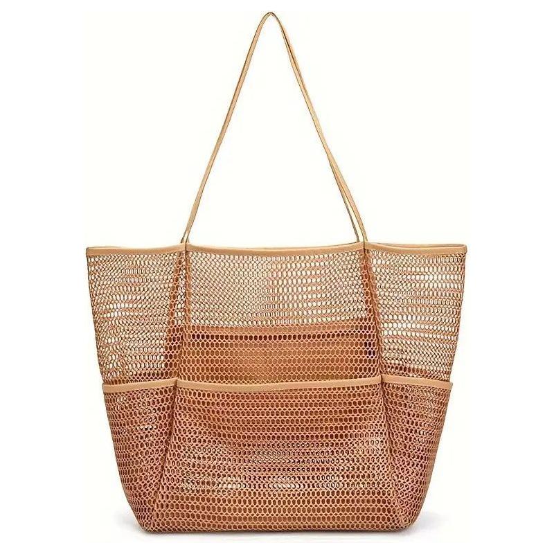 Perfect for beach days, poolside lounging, and outdoor adventures, this mesh beach tote bag is designed for style and convenience. Its breathable mesh design ensures quick drying and sand-free storage, while the spacious compartments keep your essentials organized.