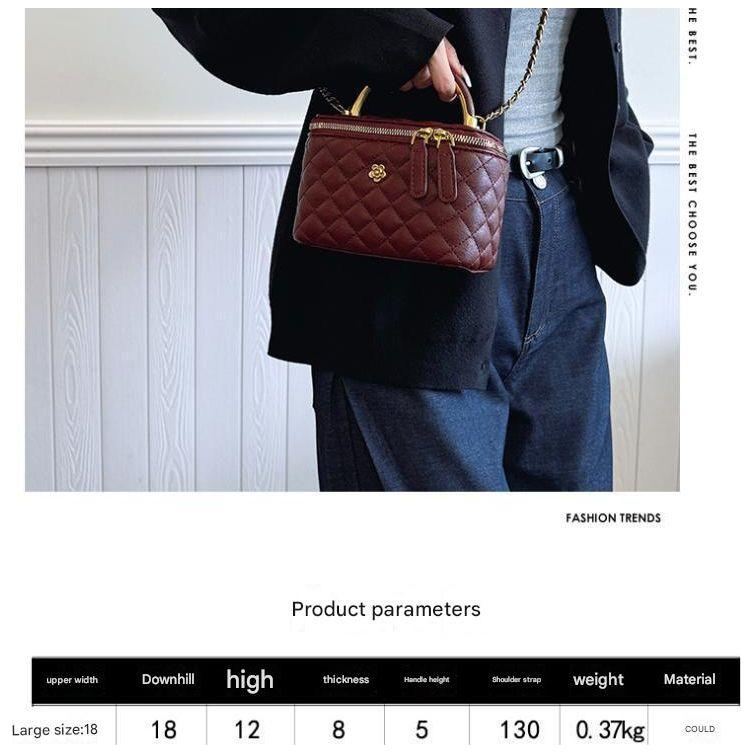 Elevate your style with this elegant mini box handbag, perfect for evening events and special occasions. Featuring a chic quilted design, a polished metal handle, and a delicate chain strap, this purse is both fashionable and functional.