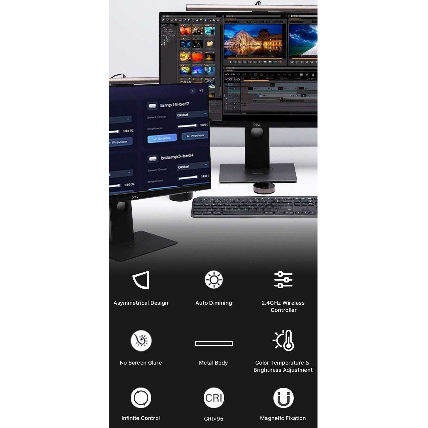 The lamp is a source of soft, diffused light , specially designed like this. that, despite mounting on the monitor, it does not illuminate the screen and does not shine in the user's eyes. The lamp has built-in LEDs imitating the color of light in the range of 2700K - 6500K. Thanks to the included wireless controller , you are able to change the parameters of the light without having to break away from your duties and approach it.