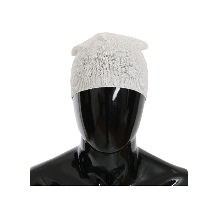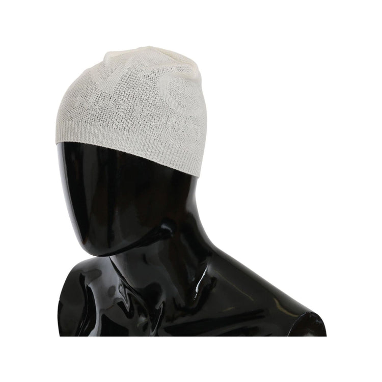 Costume National Men's Beanie White Wool Blend Branded Hat - One Size