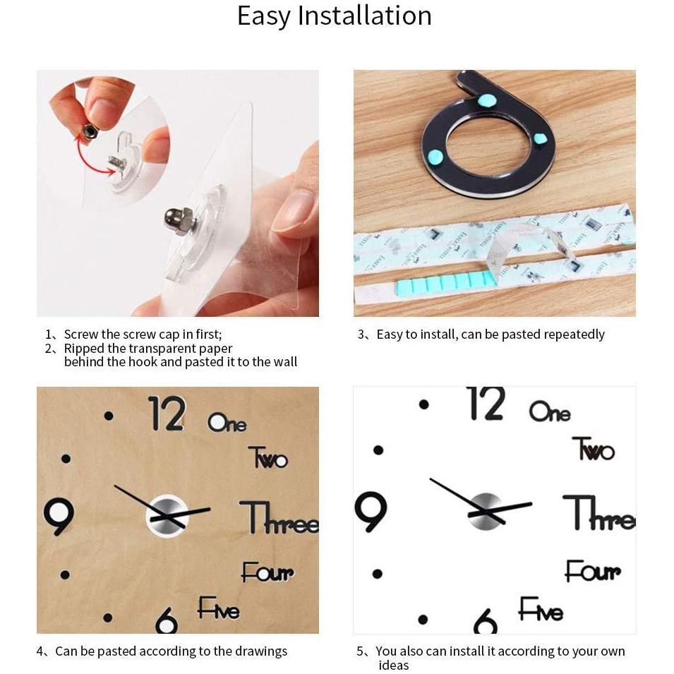 - Modern Design: Large size for wall decoration, acrylic mirror surface of the DIY wall clock let your room get a stylish and modern atmosphere. Size:50*45CM
