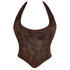 • 1 x Fish Bone Jacquard Deep V-Neck Corset Crop Top With Halter Neck Plus Size