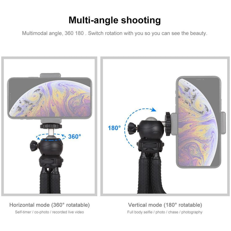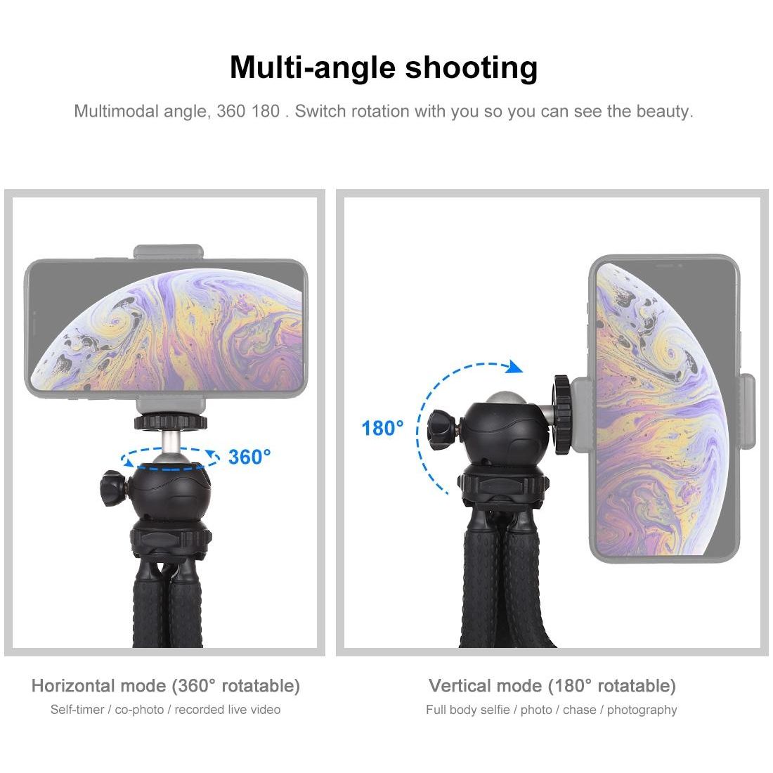 • Flexible tripod legs for versatile positioning on various surfaces.