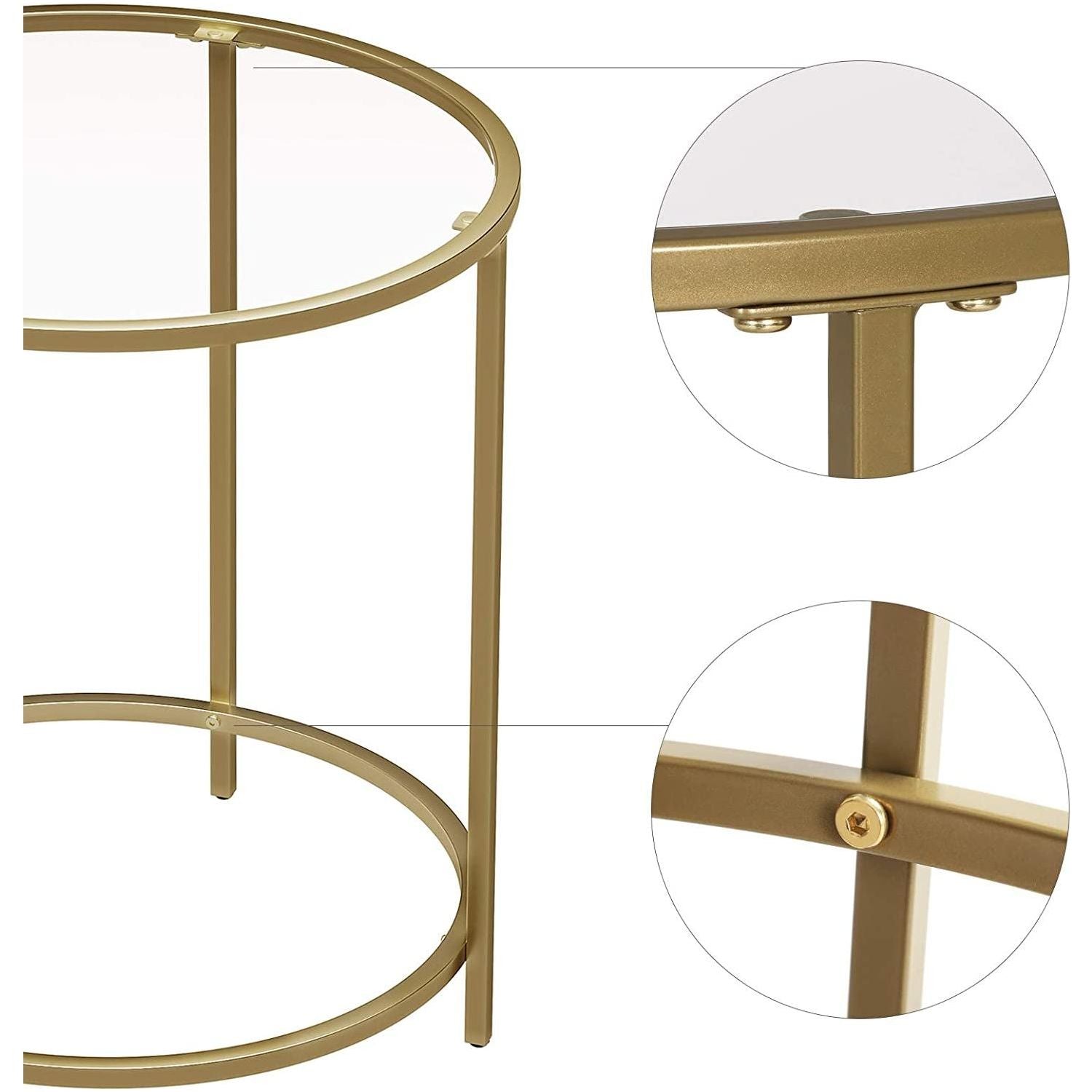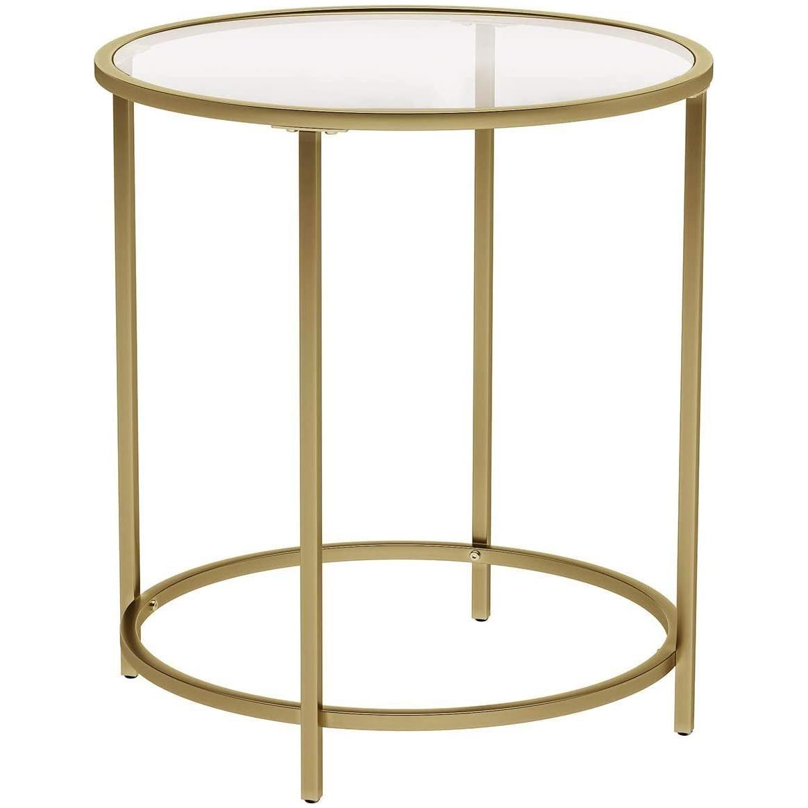 Stunning Minimalism: Take your home to the next level with a modern side table that unites sleek, gold colored metal and a tempered glass top into one minimalist-yet-functional piece.